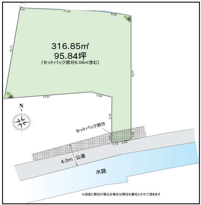 | 備考 | ※図面と現況が異なる場合は現況を優先と致します。 ※現況測量面積:307.48㎡ ※旗竿地 | ||