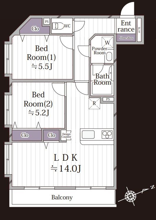 | 専有面積 | 58.66m² (17.74坪) (壁芯) | 間取り | 2LDK |
