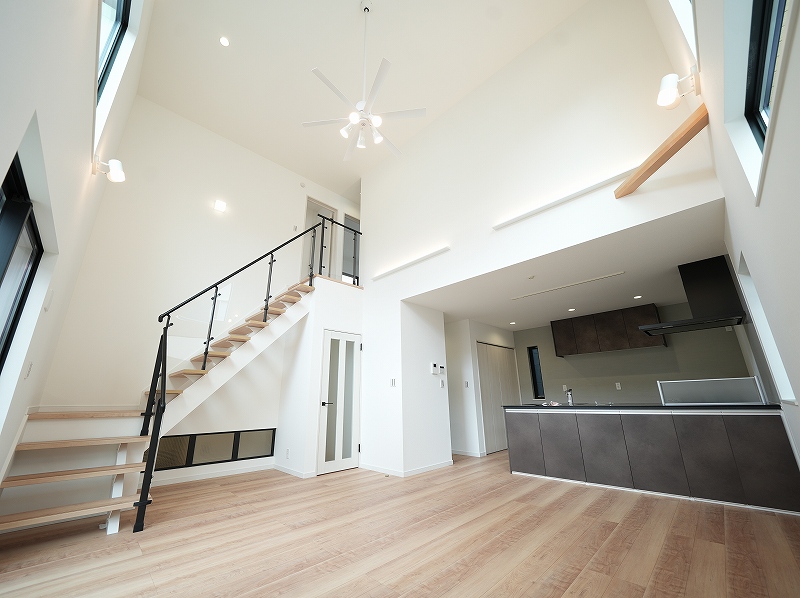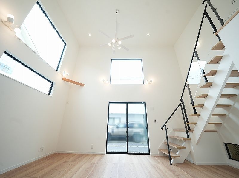 ★リビングはオープン階段・大きな吹抜けにFIX窓のオシャレな空間!明るい開放感をお楽しみください!
