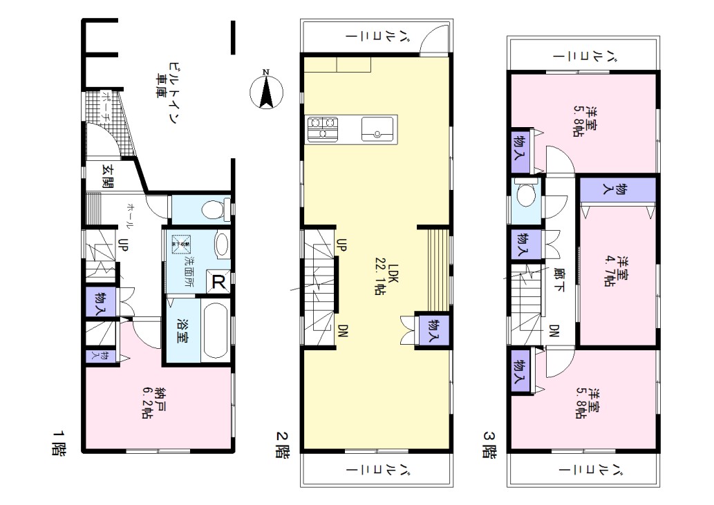 | 間取り | 4LDK | 建物構造 | 木造 | 階建 | 地上3階 | 築年月 | 2016年01月 |