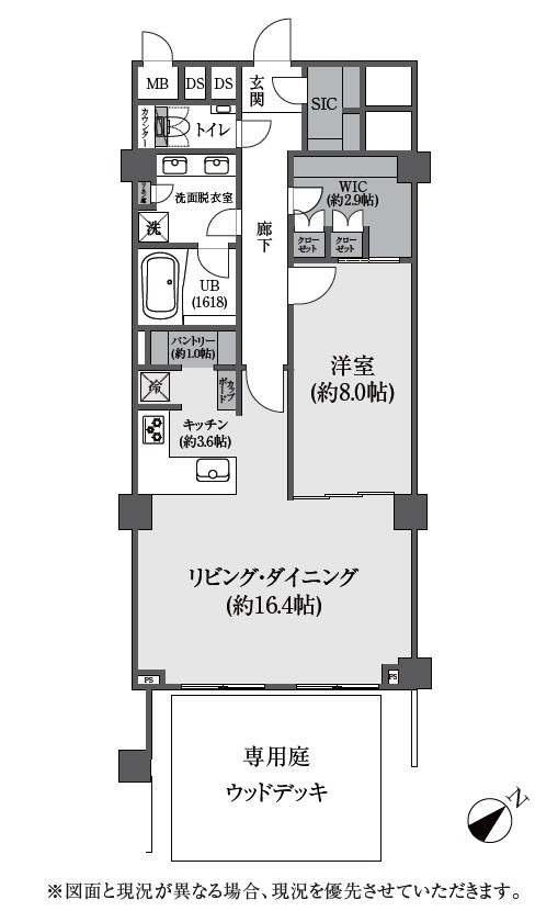 | 専有面積 | 81m² (24.5坪) (壁芯) | 間取り | 1LDK +WIC・SIC・パントリー |