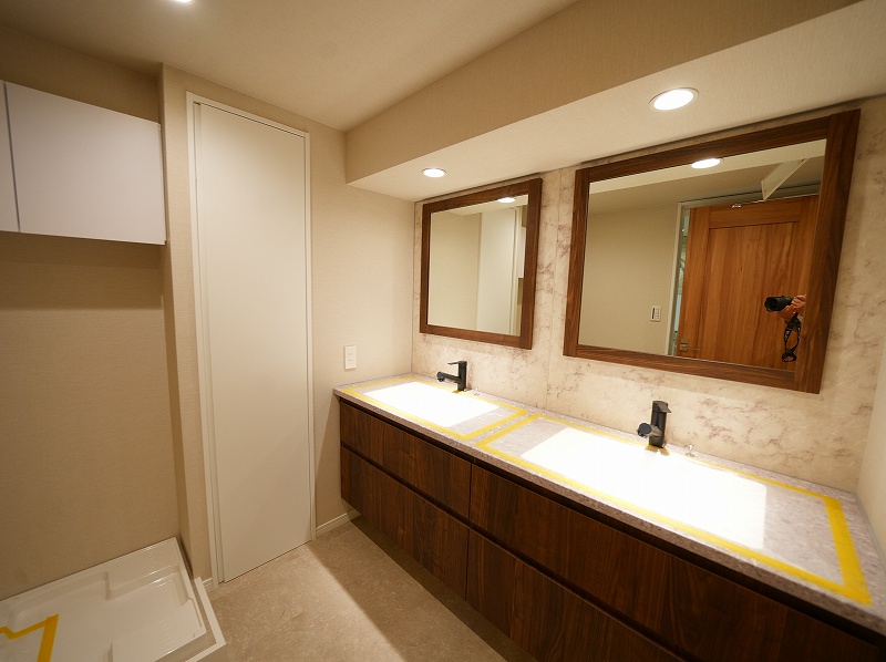 洗面所は2ボウル、室内洗濯機置場、リネン庫あり。