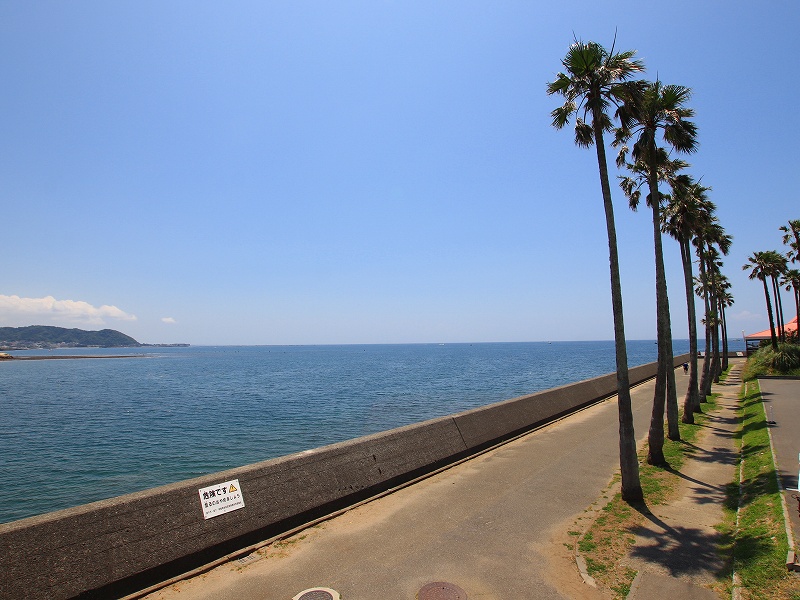 逗子マリーナ5号棟は「小坪海浜公園」の目の前にあり、前方棟無しで抜け感を得られる立地。