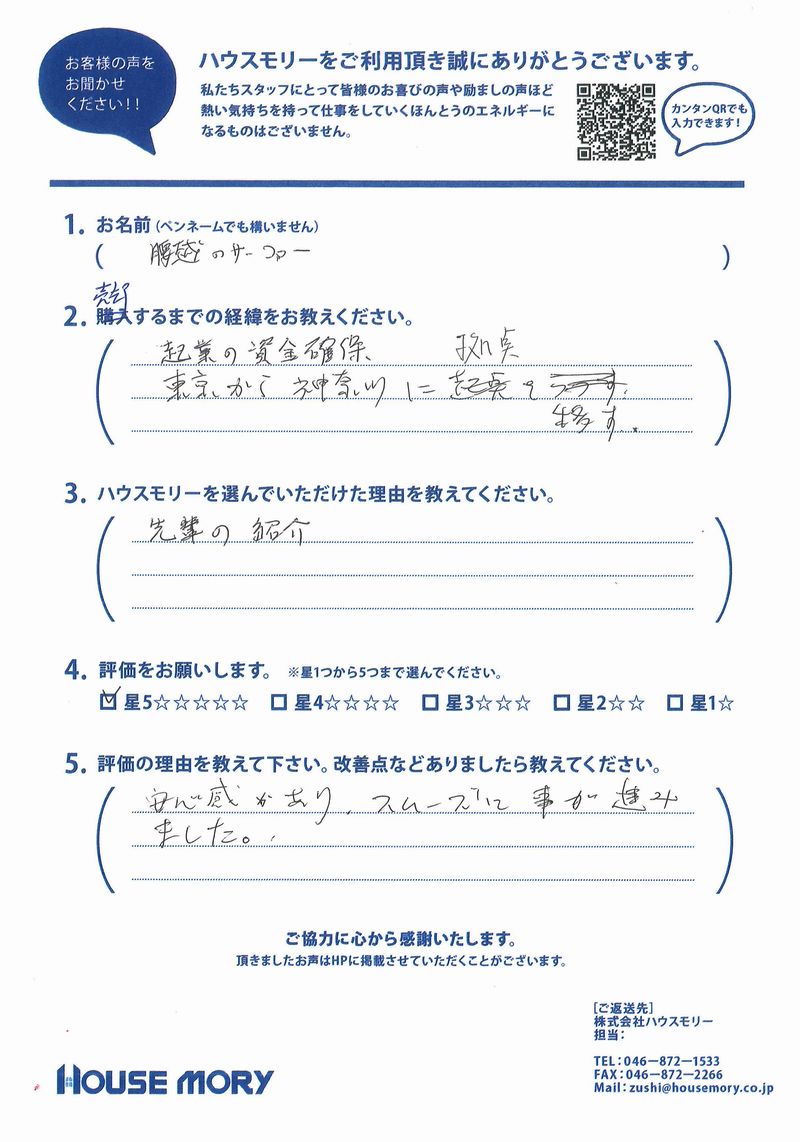 安心感があり、スムーズに事が進みました。