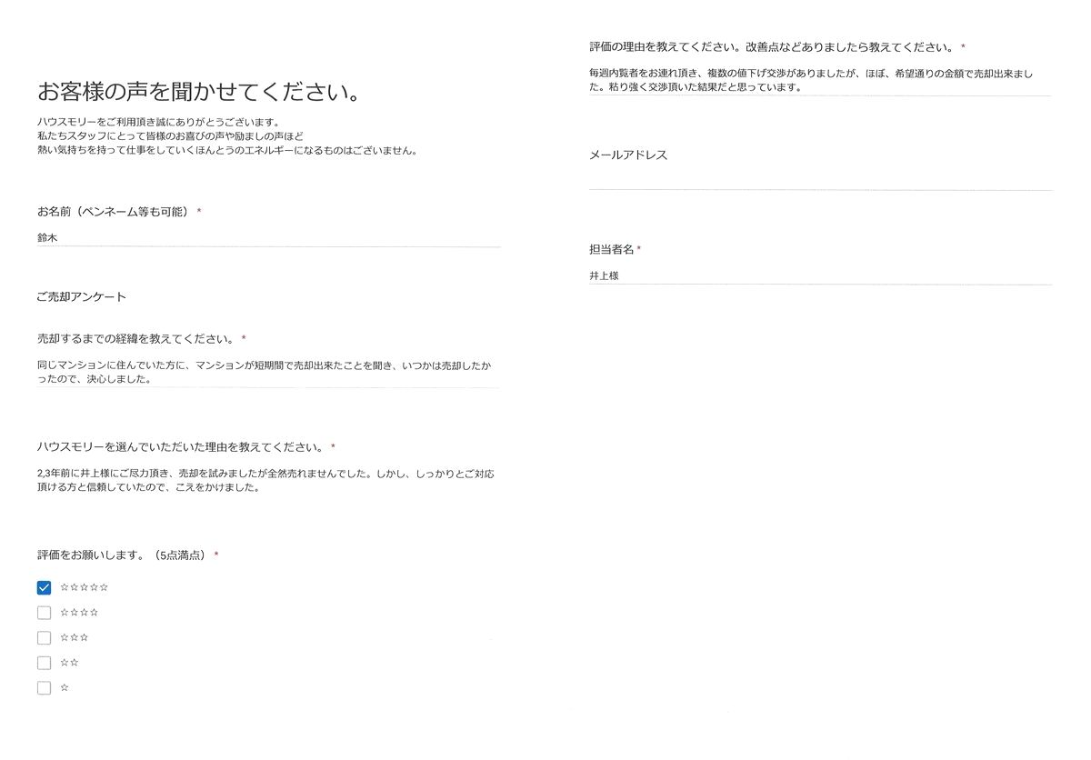 《お客様の声をお寄せいただきありがとうございました》