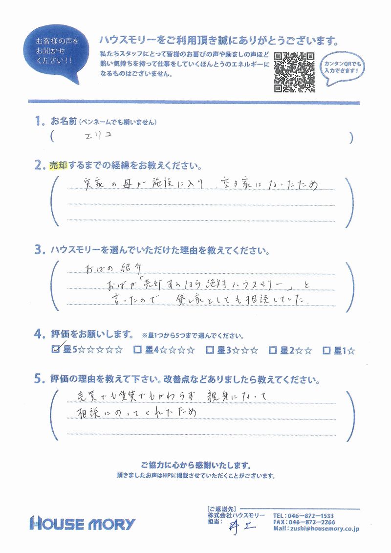 おばが「売却するなら絶対ハウスモリー」と言ったので