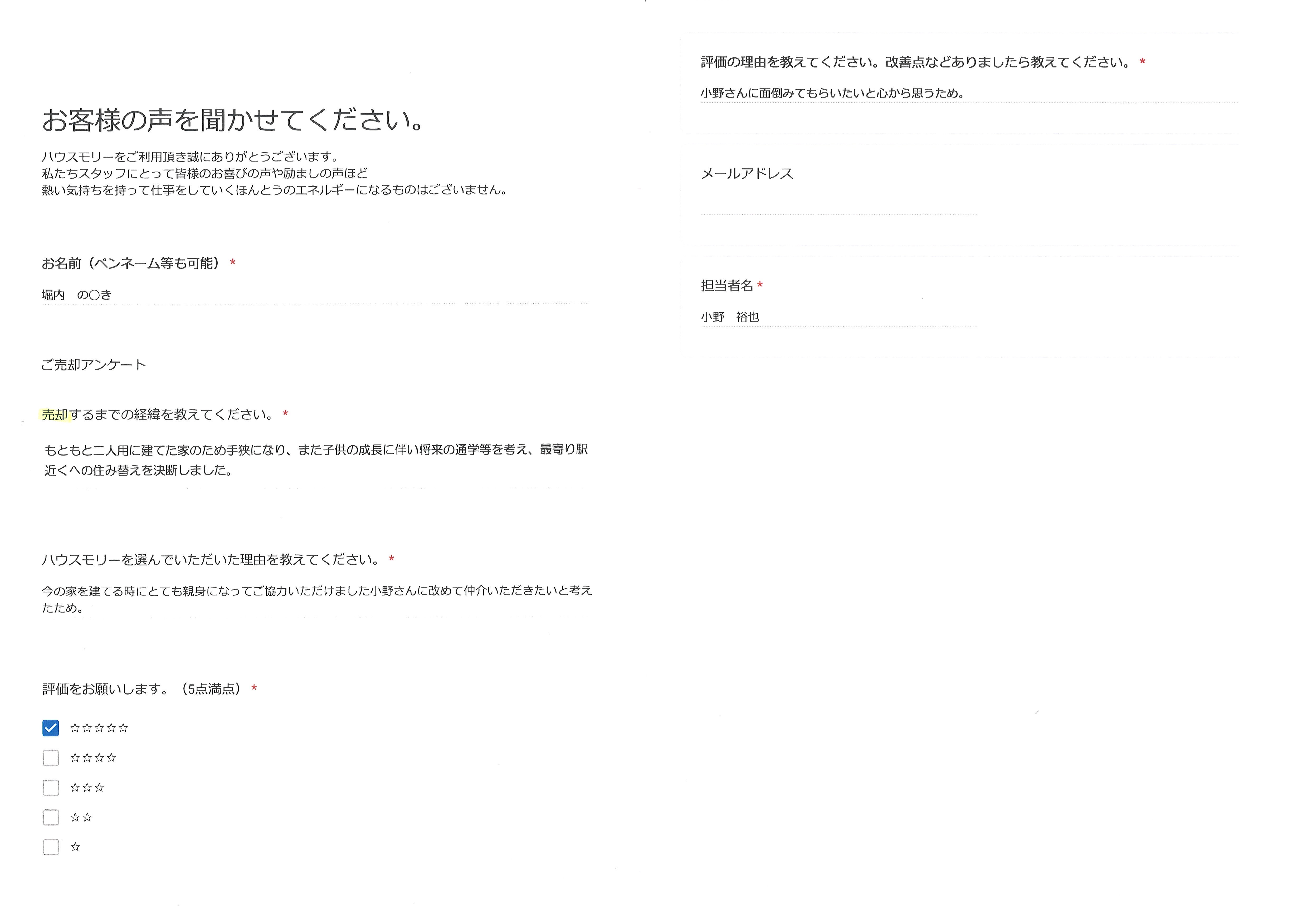 ●ハウスモリーを選んでいただいた理由を教えてください。